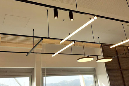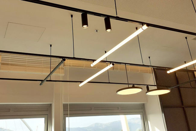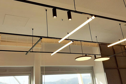 Micro track systems offer all of the flexibility of conventional lighting track in extremely compact form. Variously sized projectors, linear modules and pendants are available and all systems are dimmable. System B luminaires are DALI dimmable and individually addressed, System F luminaires may be dimmed by DALI or 0-10V controller.